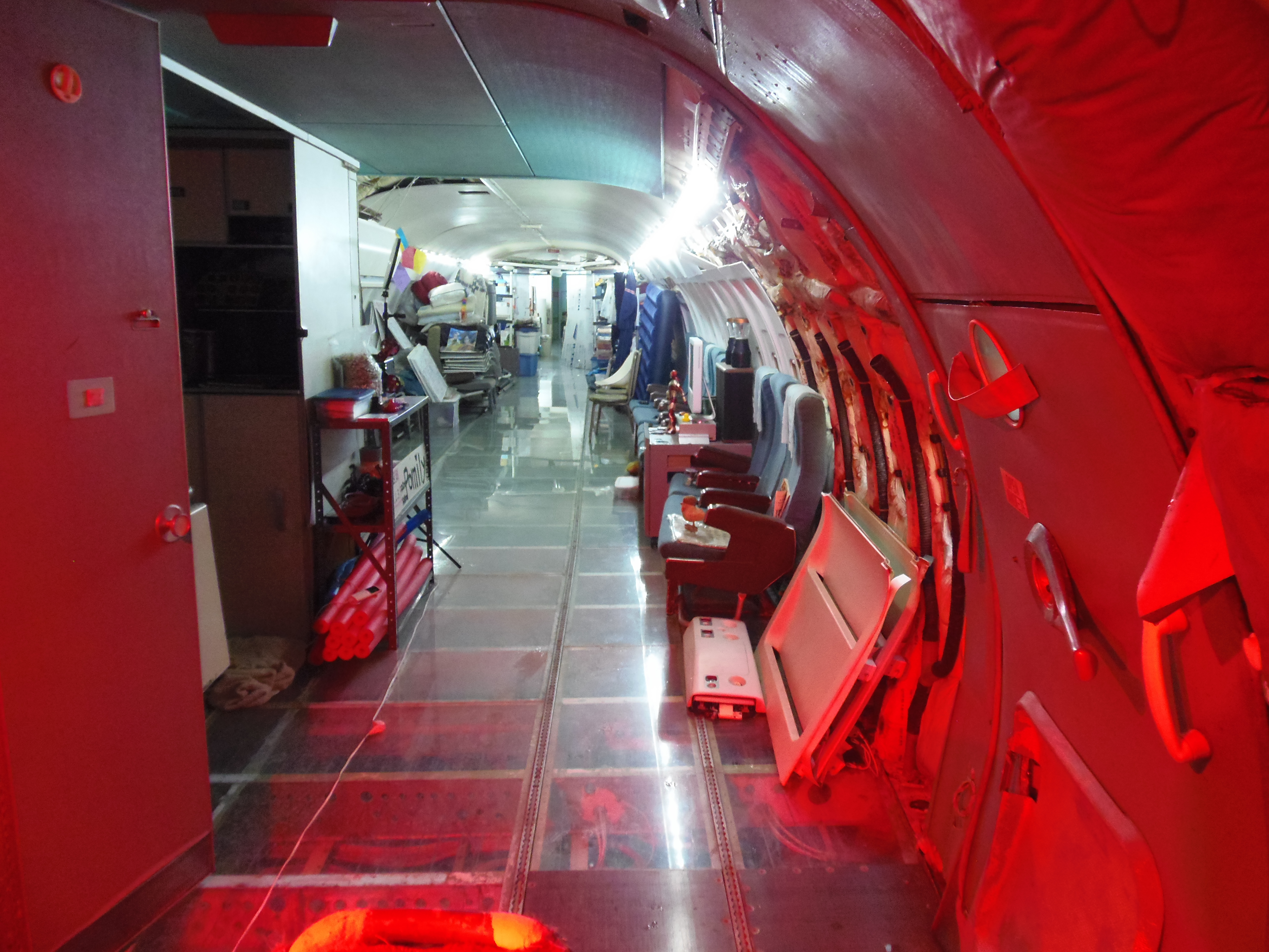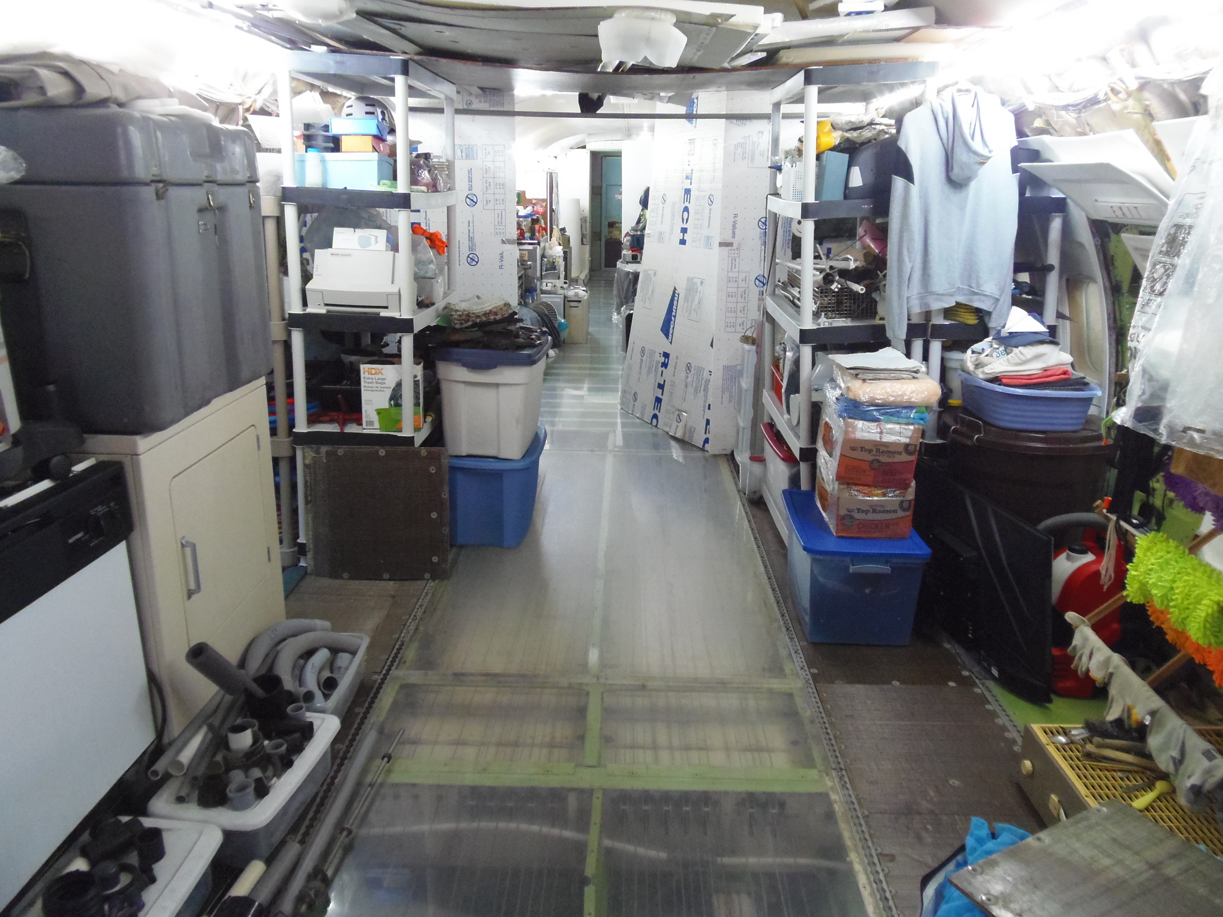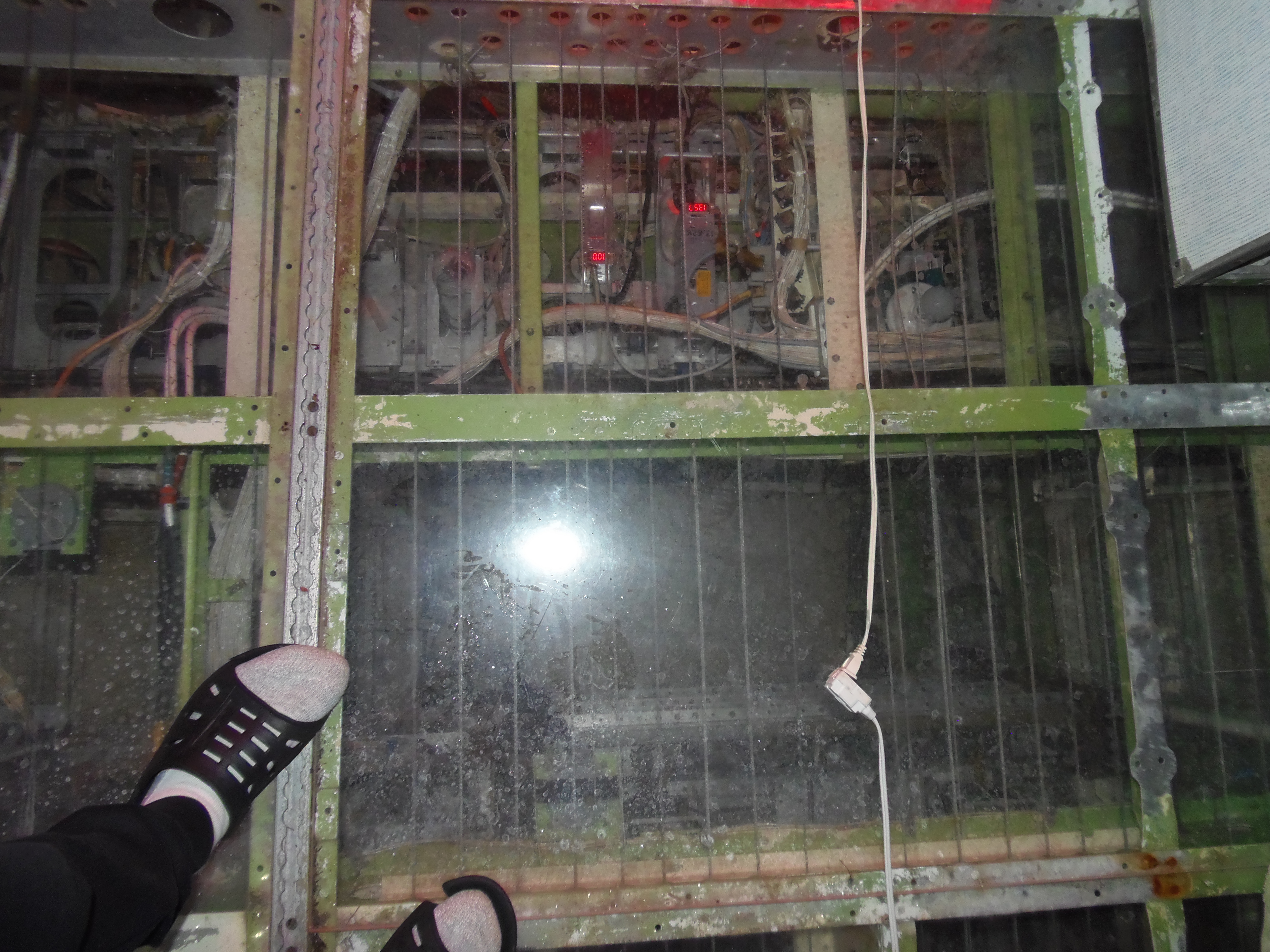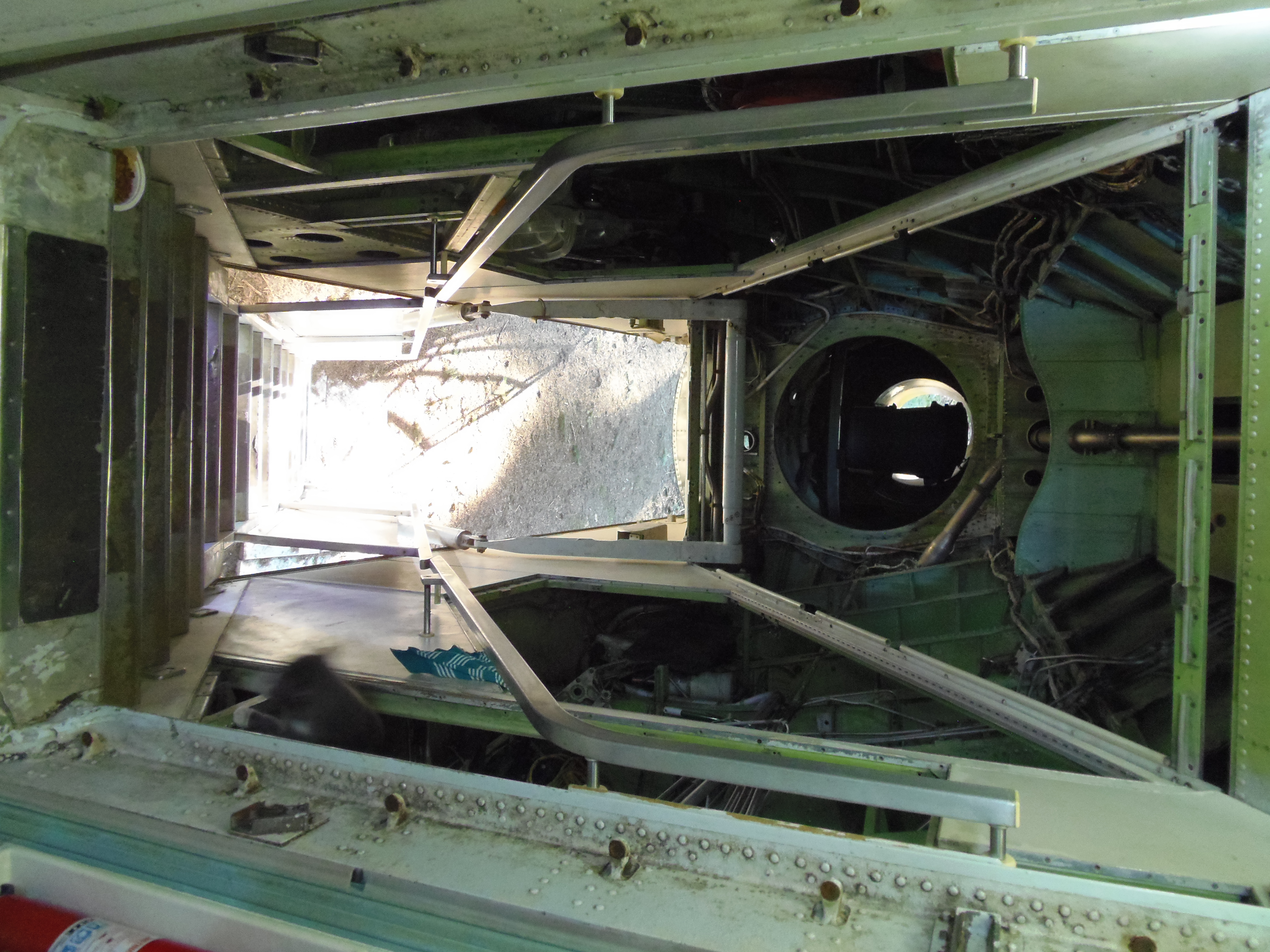 As you can see in the images crude wood, foam panel, and aluminum floor panel stacks which supported the left side and tail area of my fuselage belly during the rebuild of my left landing gear support structure remain in place, awaiting fabrication of a permanent left landing gear support structure. They're ugly and visually obstructive but must remain until the permanent landing gear support structure work is complete. I don't know when that might be...