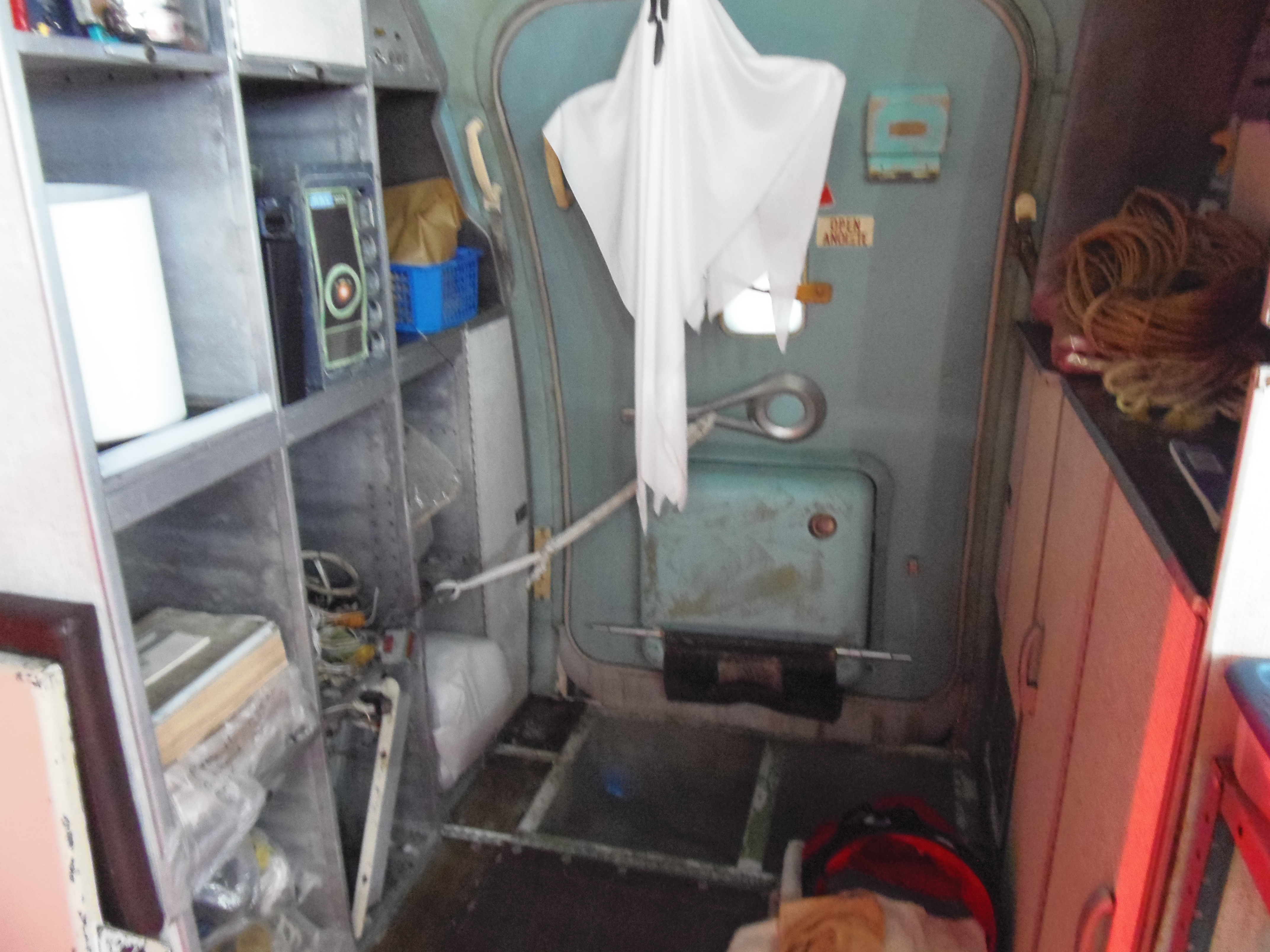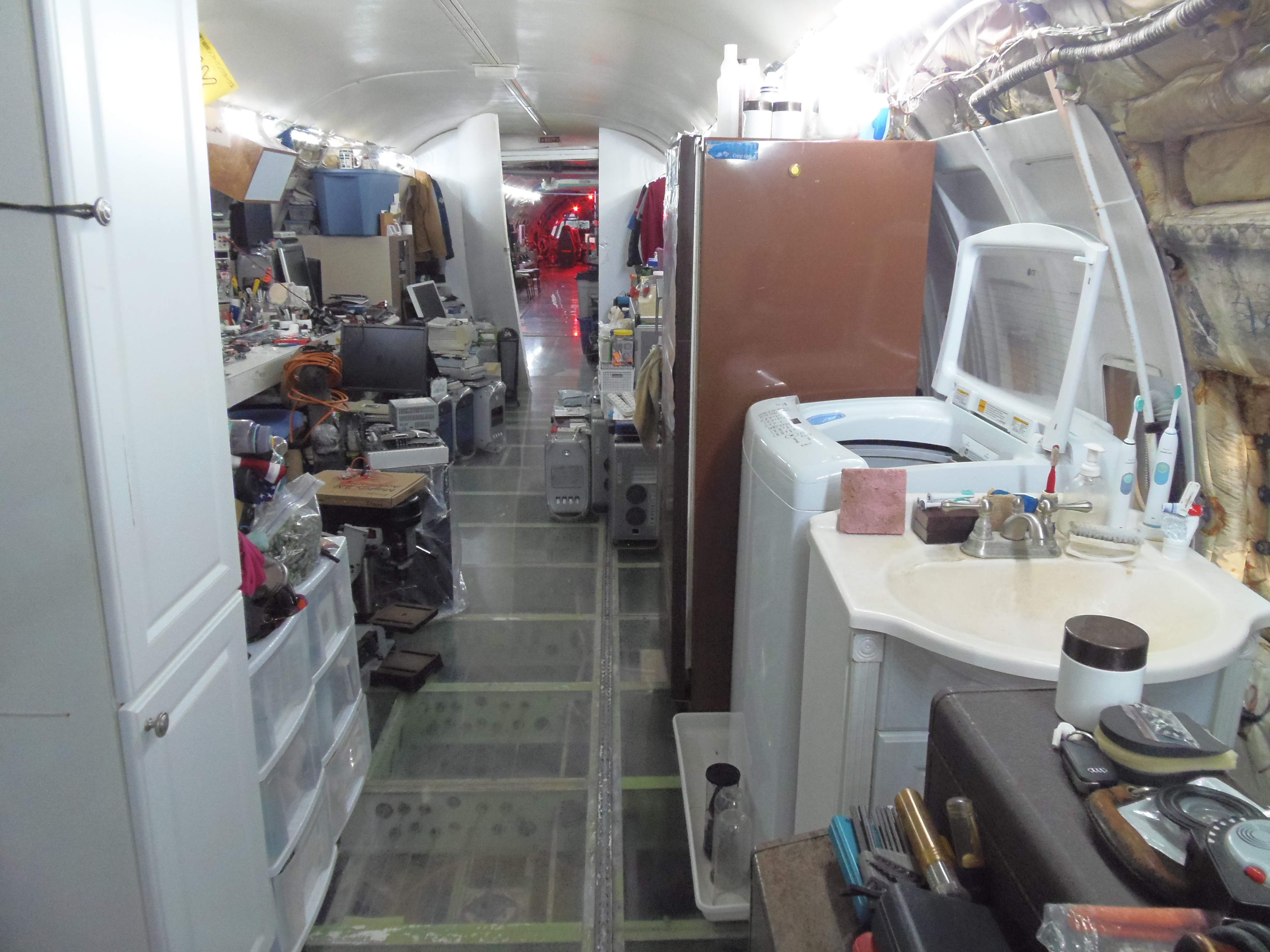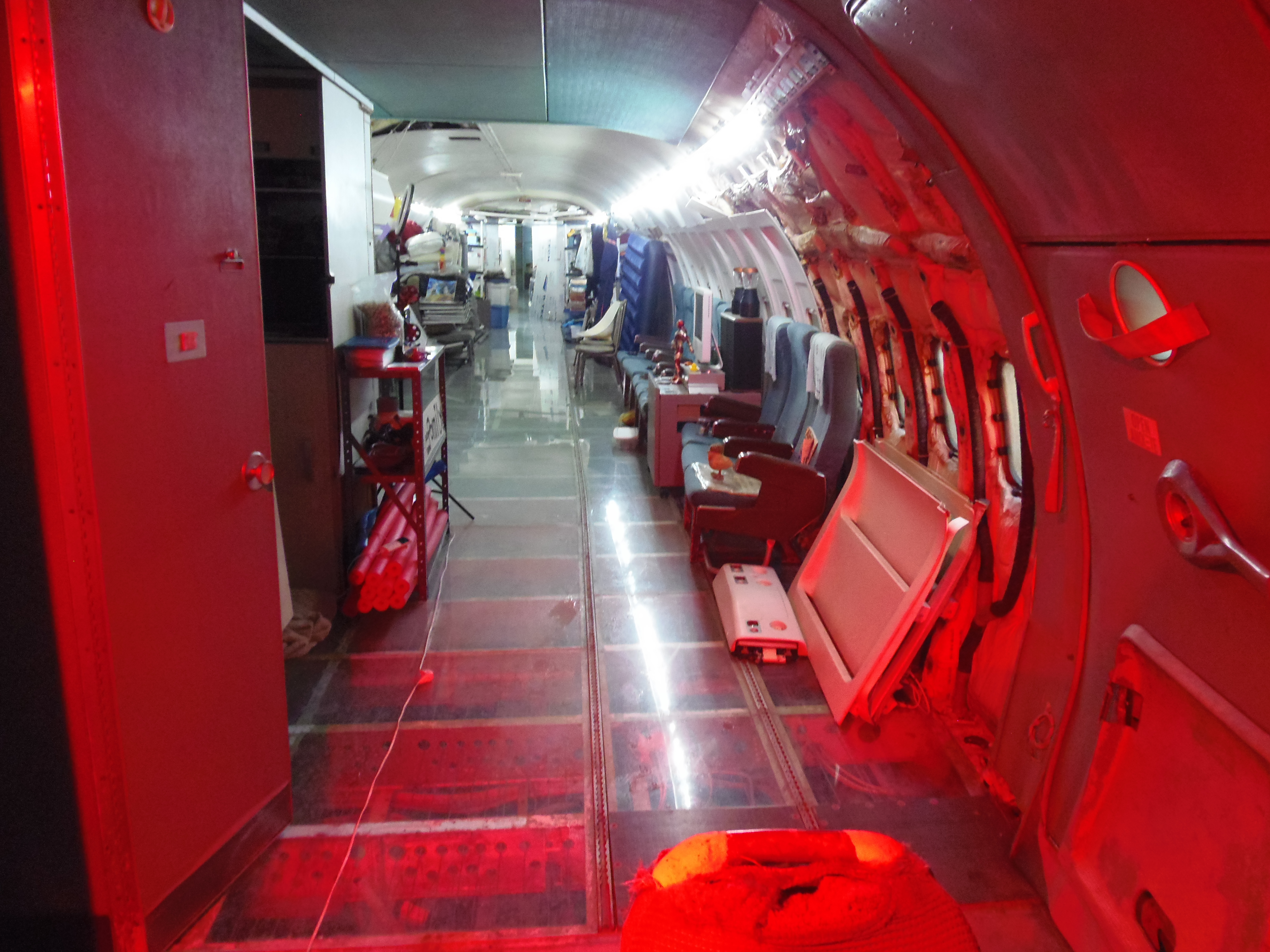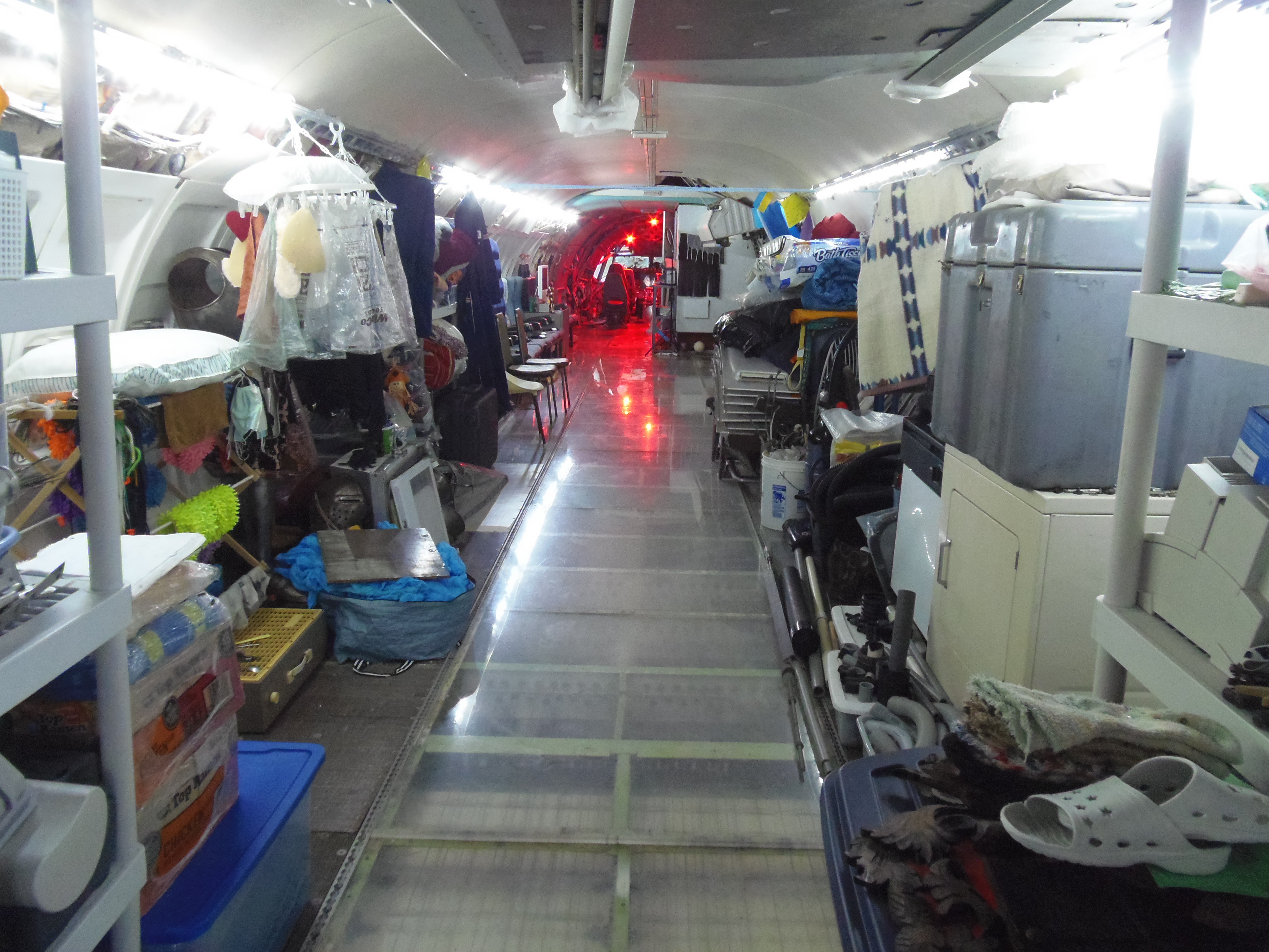 As you can see in the images crude wood, foam panel, and aluminum floor panel stacks which supported the left side and tail area of my fuselage belly during the rebuild of my left landing gear support structure remain in place, awaiting fabrication of a permanent left landing gear support structure. They're ugly and visually obstructive but must remain until the permanent landing gear support structure work is complete. I don't know when that might be...