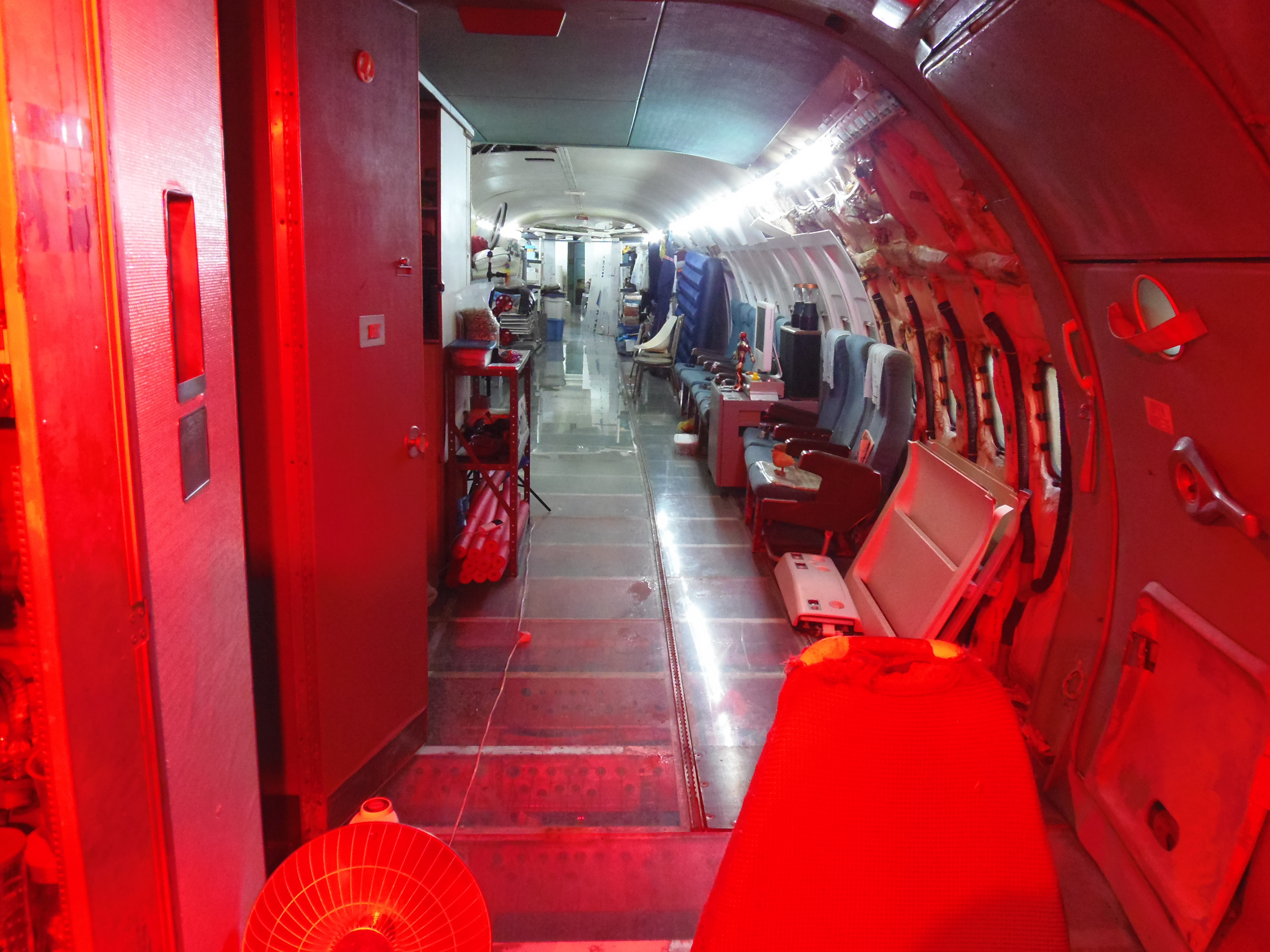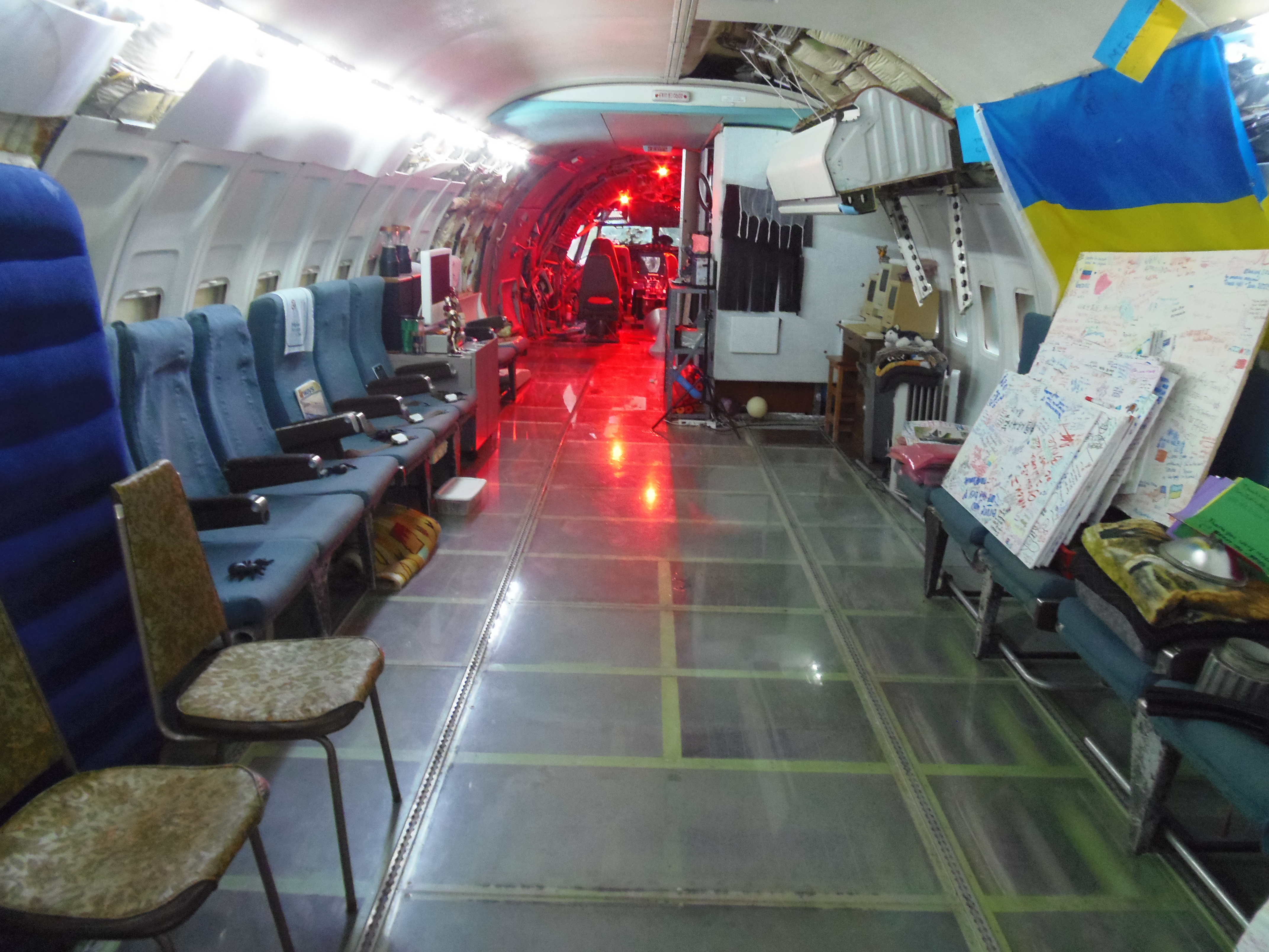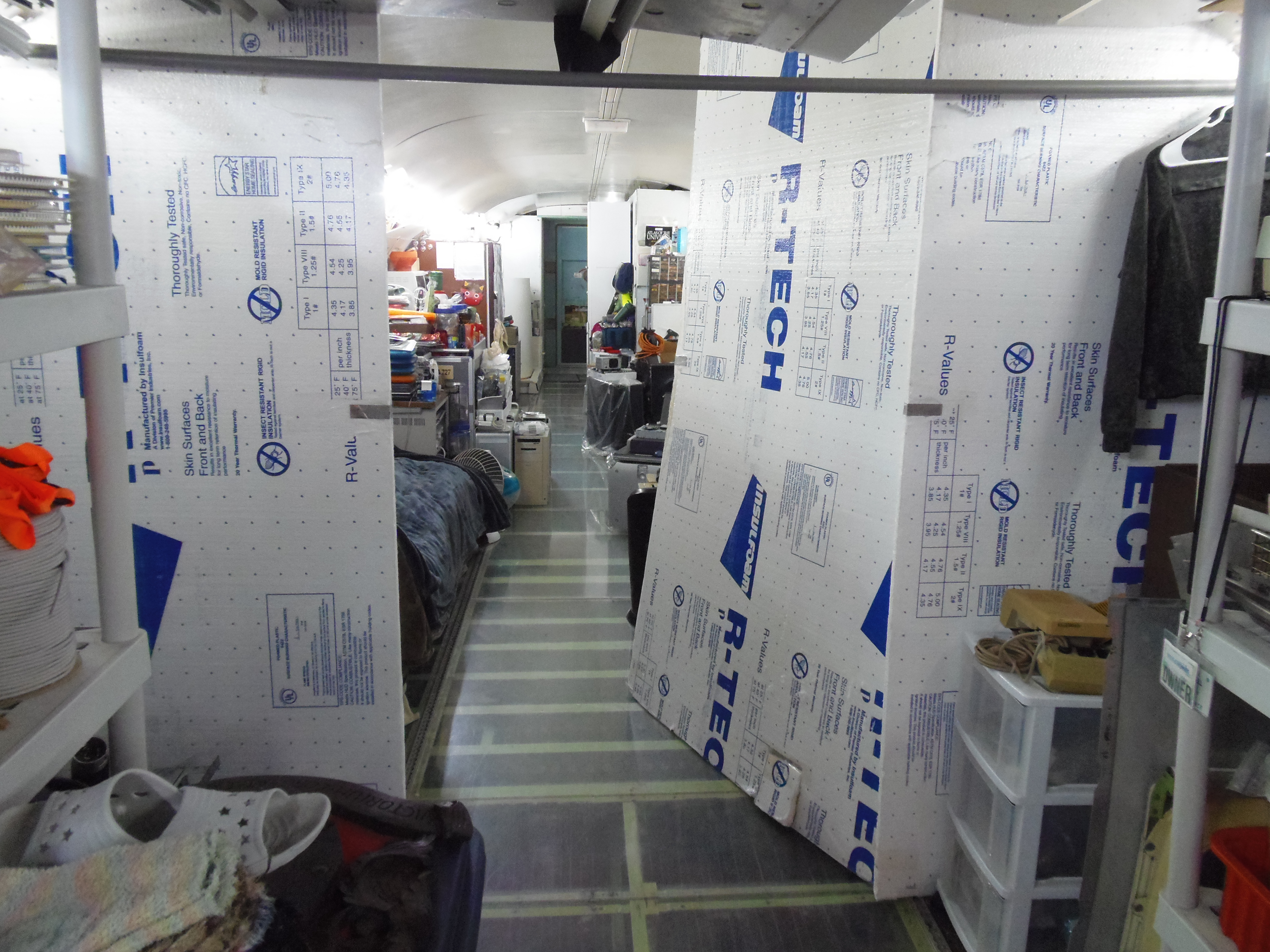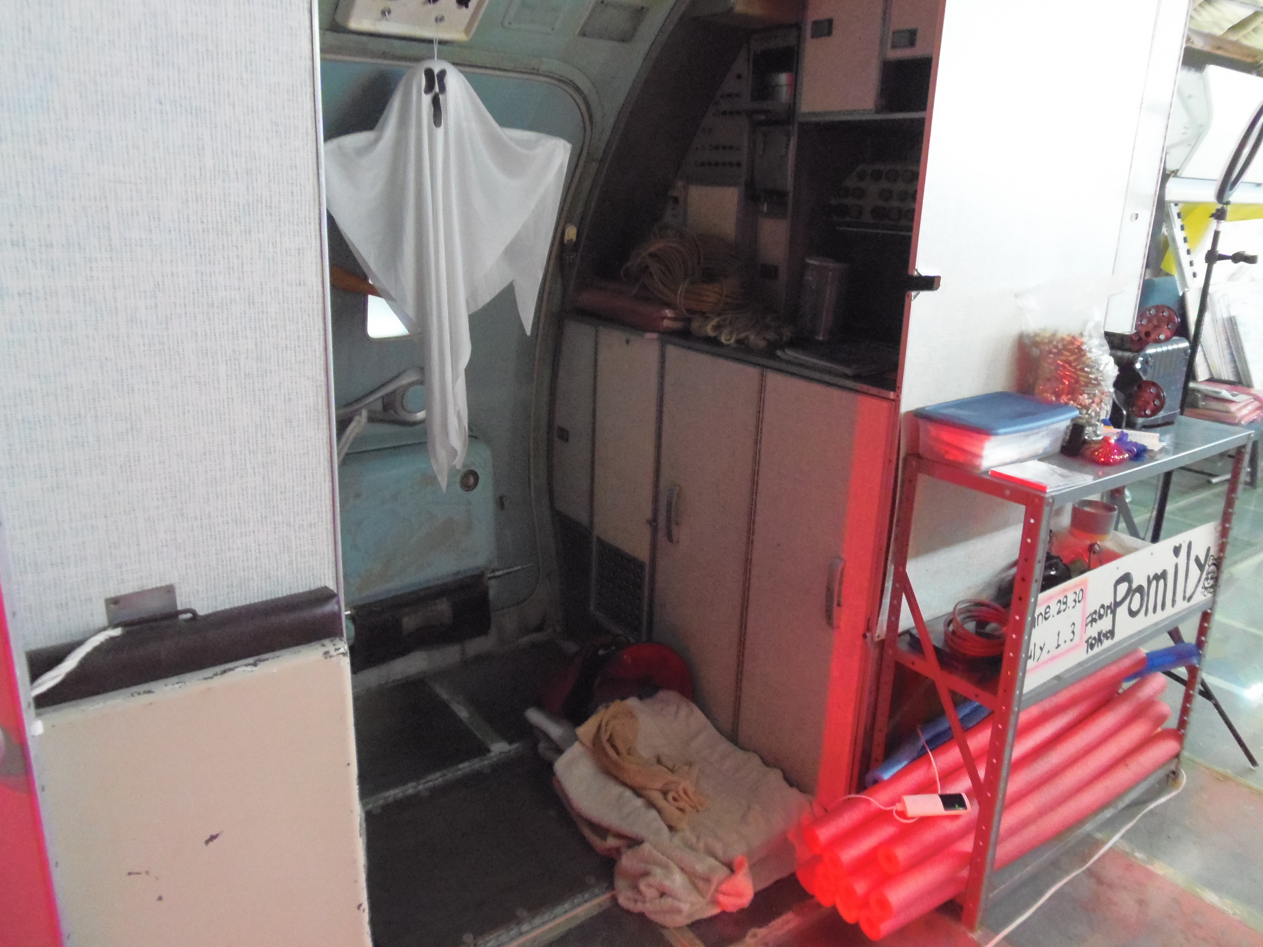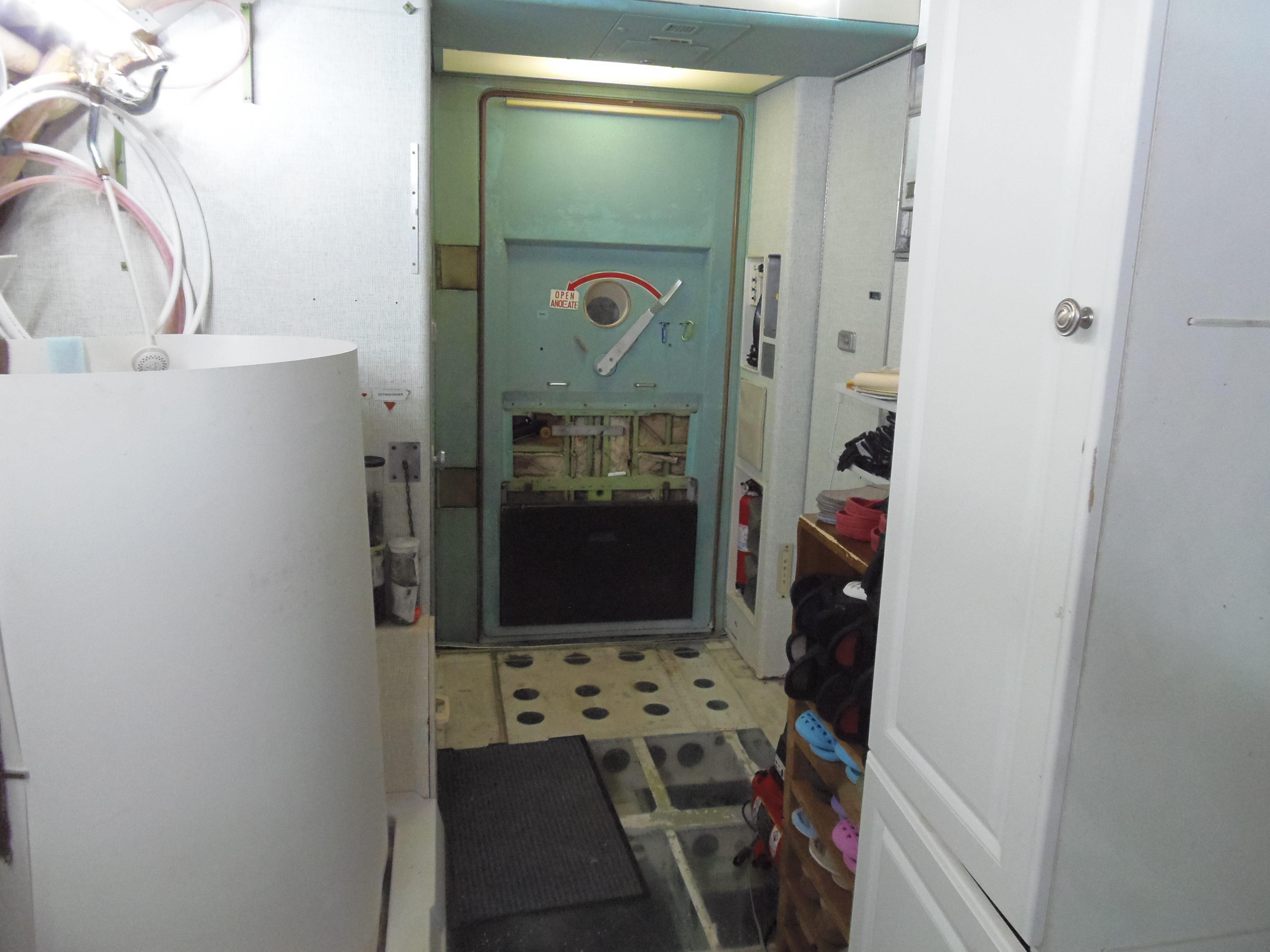 As you can see in the images crude wood, foam panel, and aluminum floor panel stacks which supported the left side and tail area of my fuselage belly during the rebuild of my left landing gear support structure remain in place, awaiting fabrication of a permanent left landing gear support structure. They're ugly and visually obstructive but must remain until the permanent landing gear support structure work is complete. I don't know when that might be...