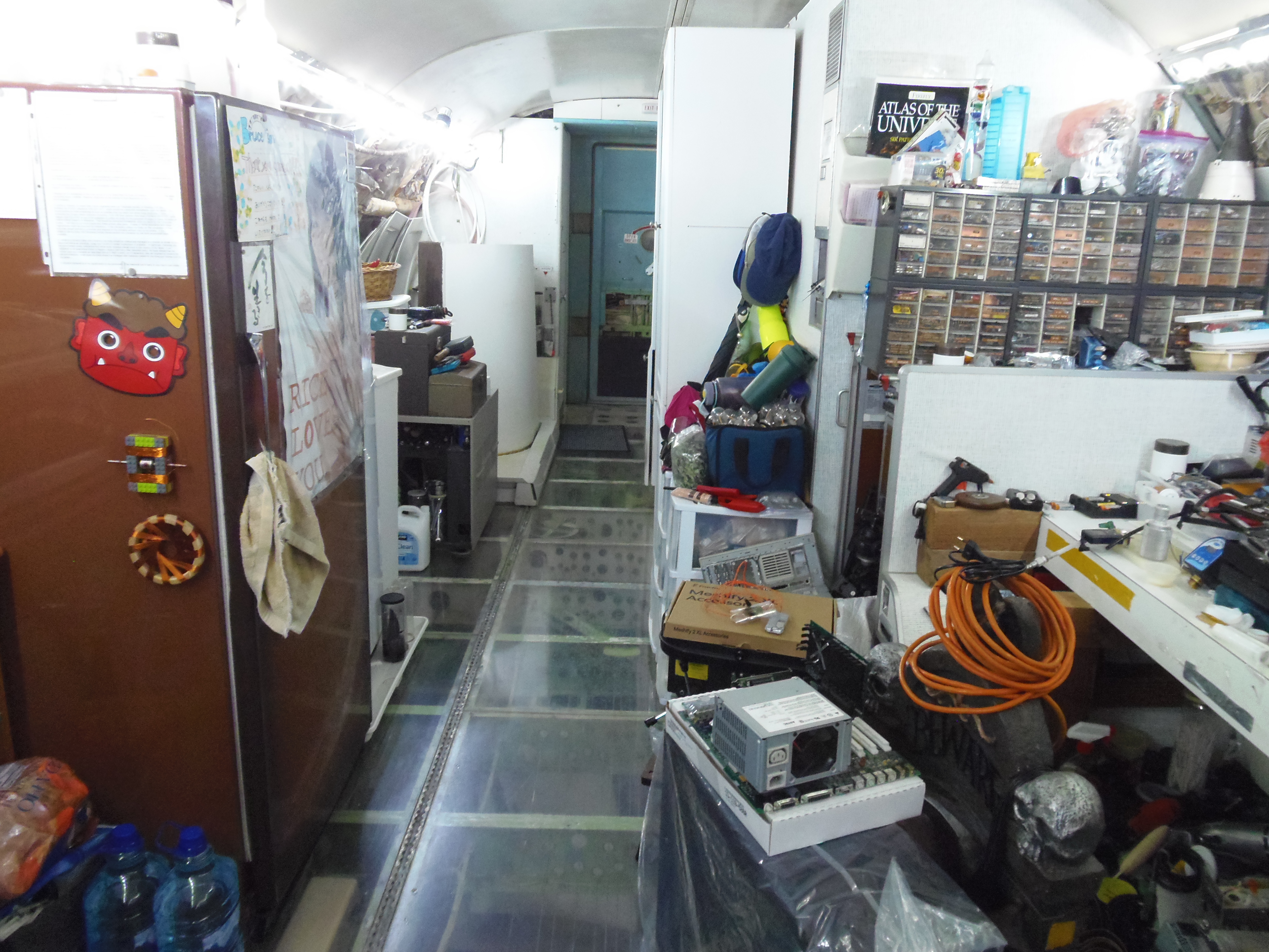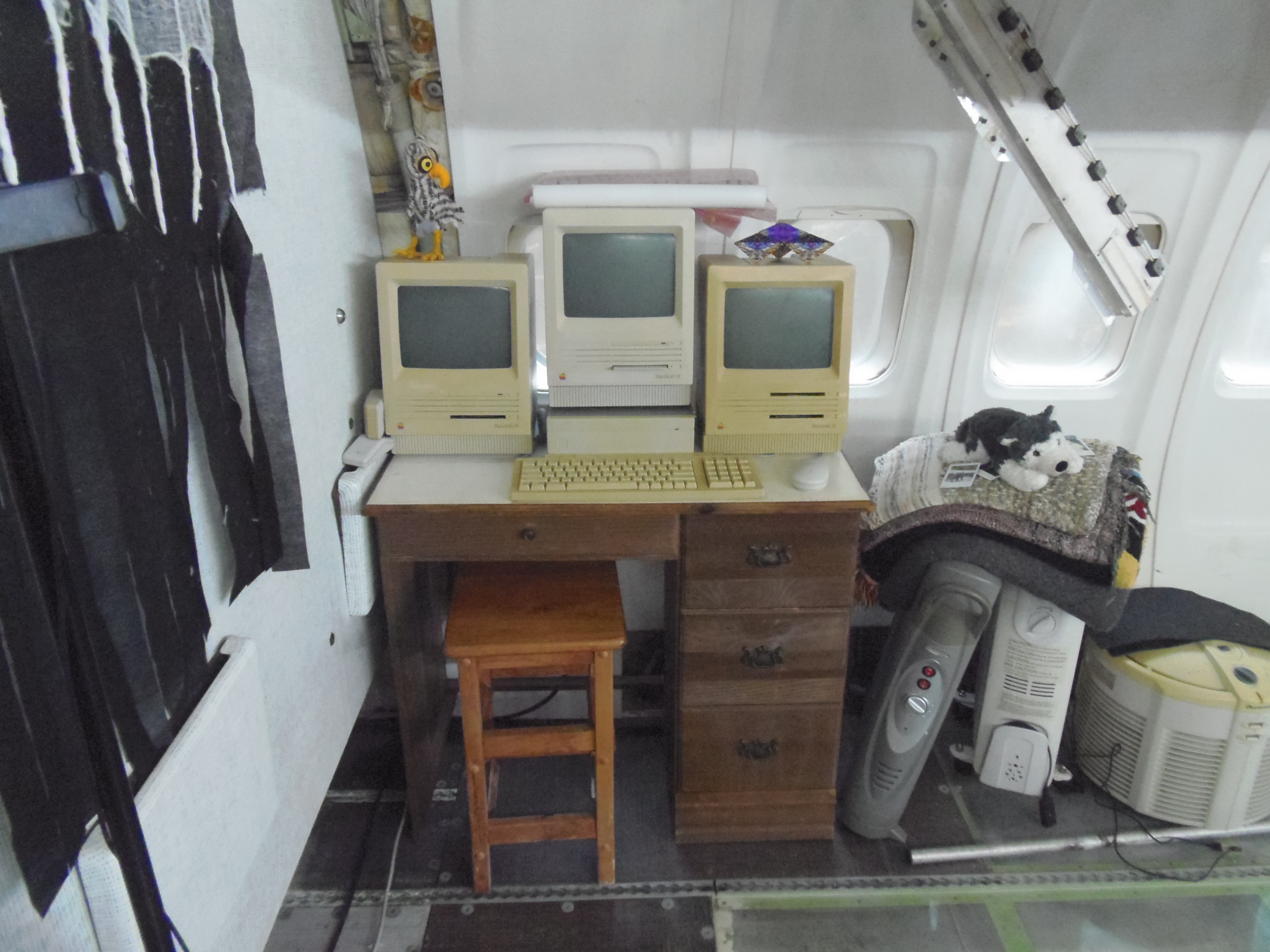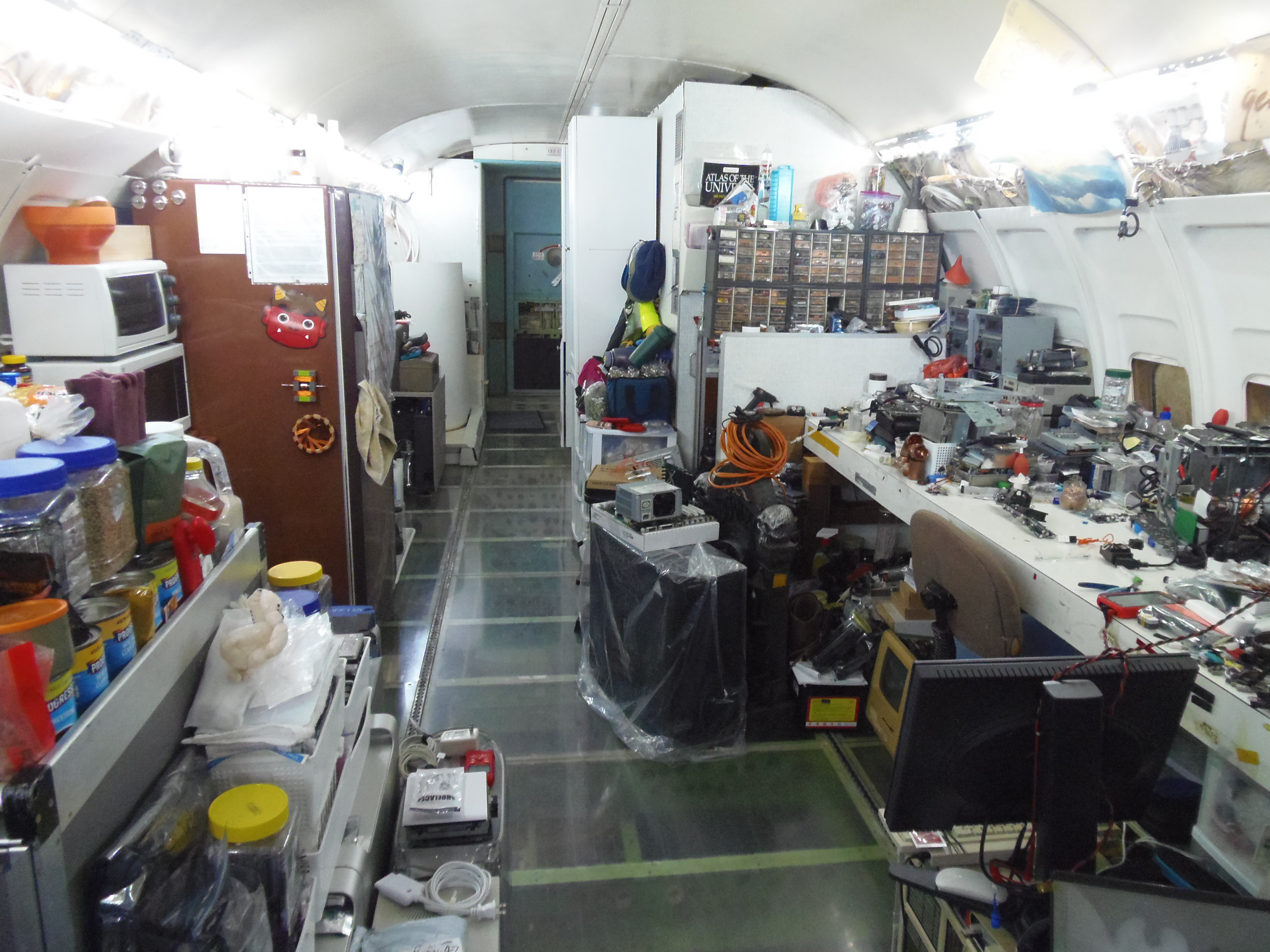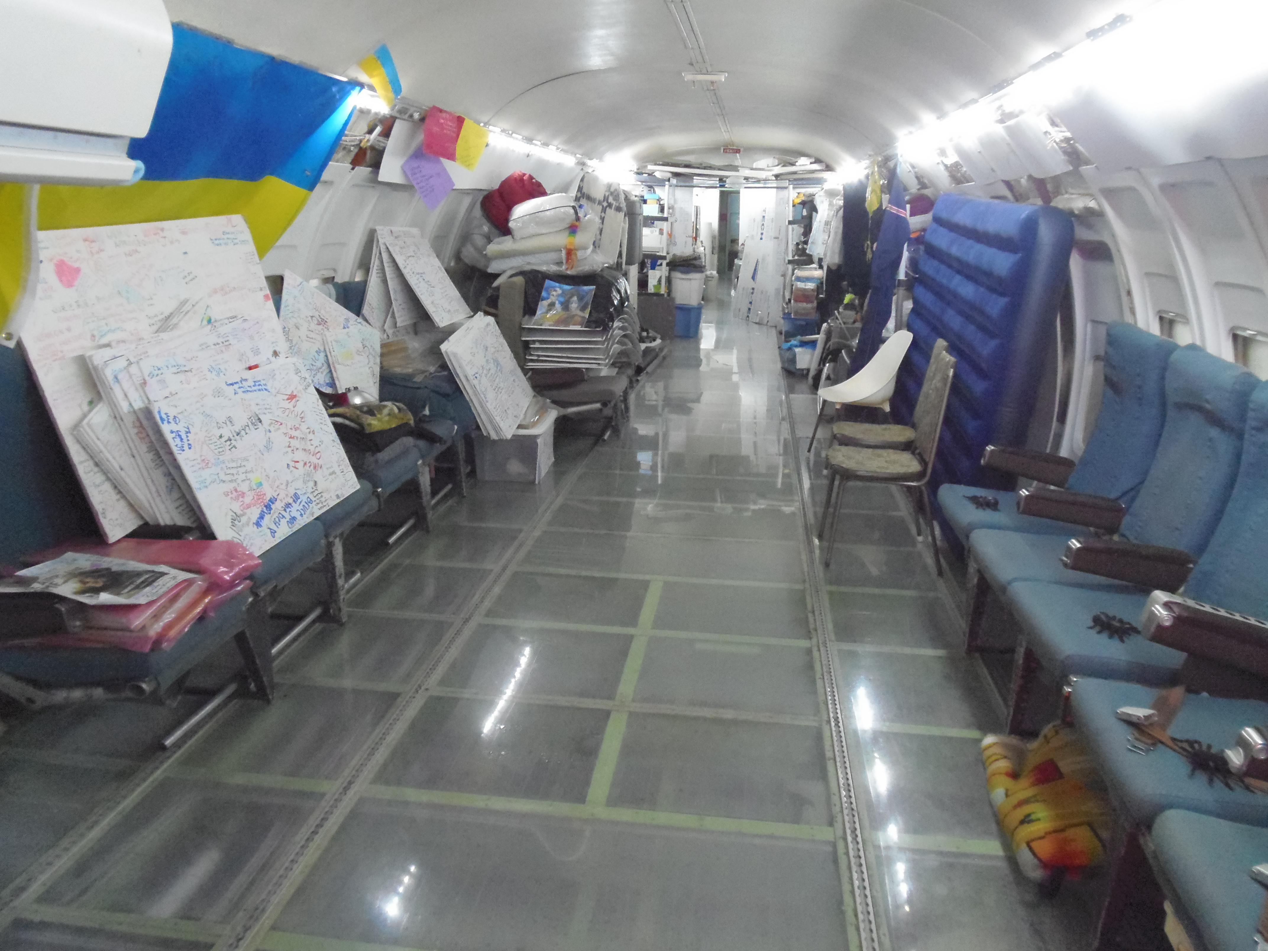 As you can see in the images crude wood, foam panel, and aluminum floor panel stacks which supported the left side and tail area of my fuselage belly during the rebuild of my left landing gear support structure remain in place, awaiting fabrication of a permanent left landing gear support structure. They're ugly and visually obstructive but must remain until the permanent landing gear support structure work is complete. I don't know when that might be...