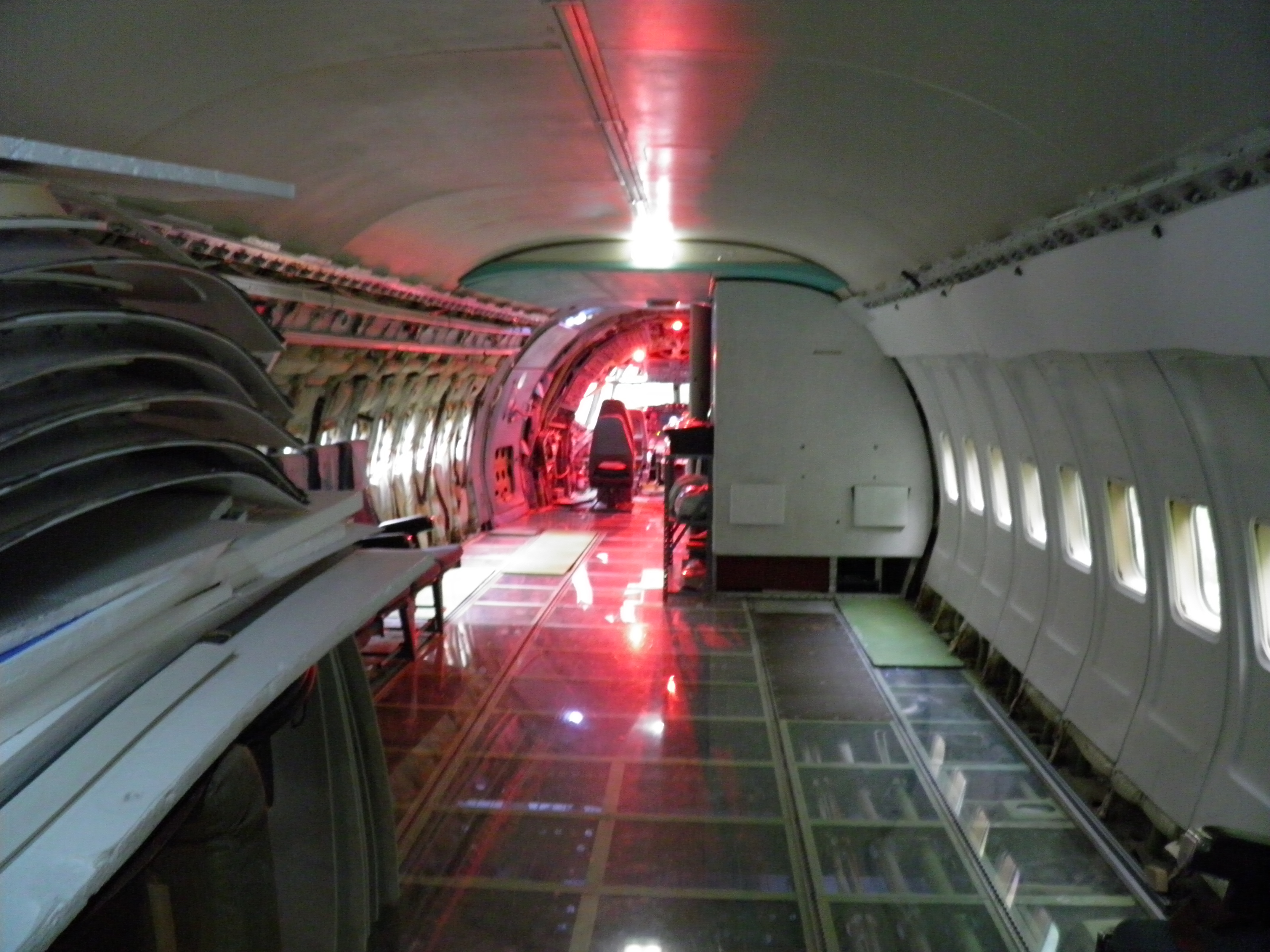 Numerous additional cabin window panels have been mounted, and some of the original cabin florescent light fixtures have been removed, and methods to cover their portion of the infrastructure underneath are being explored as you can see in a few of the images. The same conversion will be performed for the rest of the cabin later.